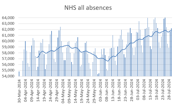 If we look at *all* absences instead, we see a pattern that matches waves of covid but with much larger numbers of staff.