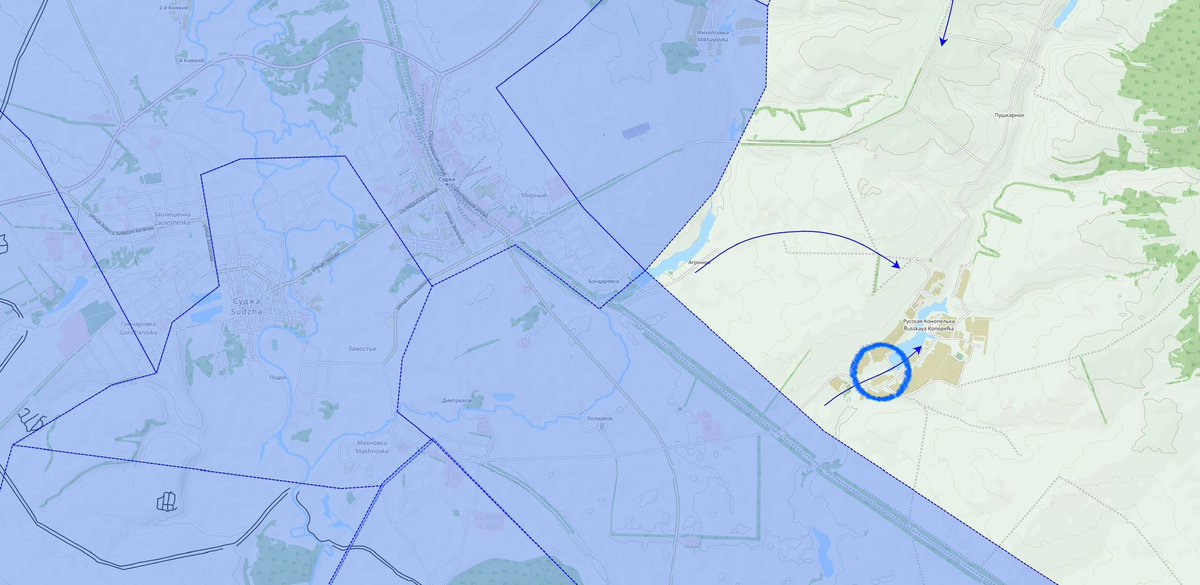 @MT_Anderson Geolocated footage shows AFU infantry -while taking some casualties- holding presence in Russkaya Konopelka, east of Sudzha. Attacks towards the settlement were reported yesterday. Next days will determine if the AFU can establish and maintain full control.