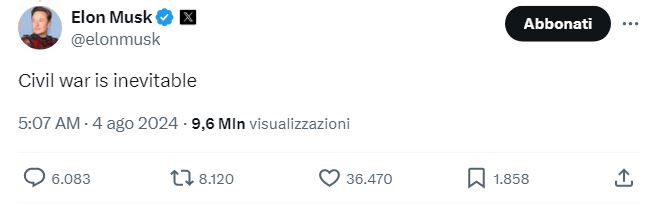 pensare alle logiche di potere, gli affari collegati alle sue aziende e le interazioni con i vari potentati politici (americani in primis), va tenuto a mente che la radicalizzazione di Musk, così come le ossessioni, sono alimentate dalle sue questioni personali. A partire