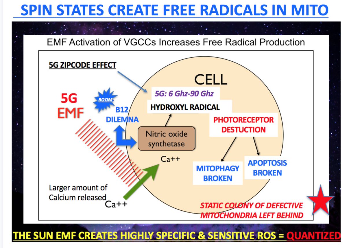 The contrast with hydroxyl radical is dramatic. Hydroxyl radical is formed by a rather slow reaction via the reaction of ferrous iron with hydrogen peroxide, but is so reactive that it can only diffuse about the diameter of a typical protein. In contrast, peroxynitrite is formed each time superoxide and NO collide, but reacts slowly enough to react more selectively throughout the cell. That makes the biological and pathological implications of peroxynitrite far more interesting in mitochondrial biochemical pathway selection because it can have more subtle and specific actions on cells. This is how biophoton spectra are dialed up and down to cause biochemistry to operate below the cell level. NO BLOCKS ATP production = it controls timing of energy flow in cells.