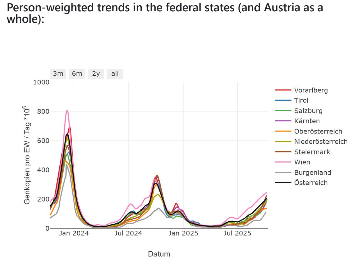 Data in #Austria show a rising COVlD wave. The x axis (bottom) has infrequent labels, but the data shown go through October 8th.