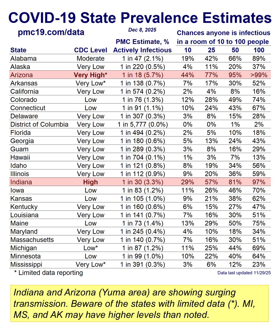 ✨1 in 209 people are estimated actively infectious, likely the lowest levels of 2025 nationwide.