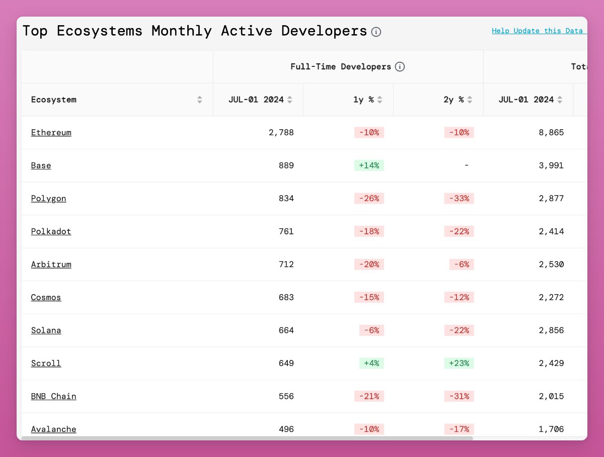 Strong developer community and cumulative brainpower in Ethereum's ecosystem support continual innovation and growth.