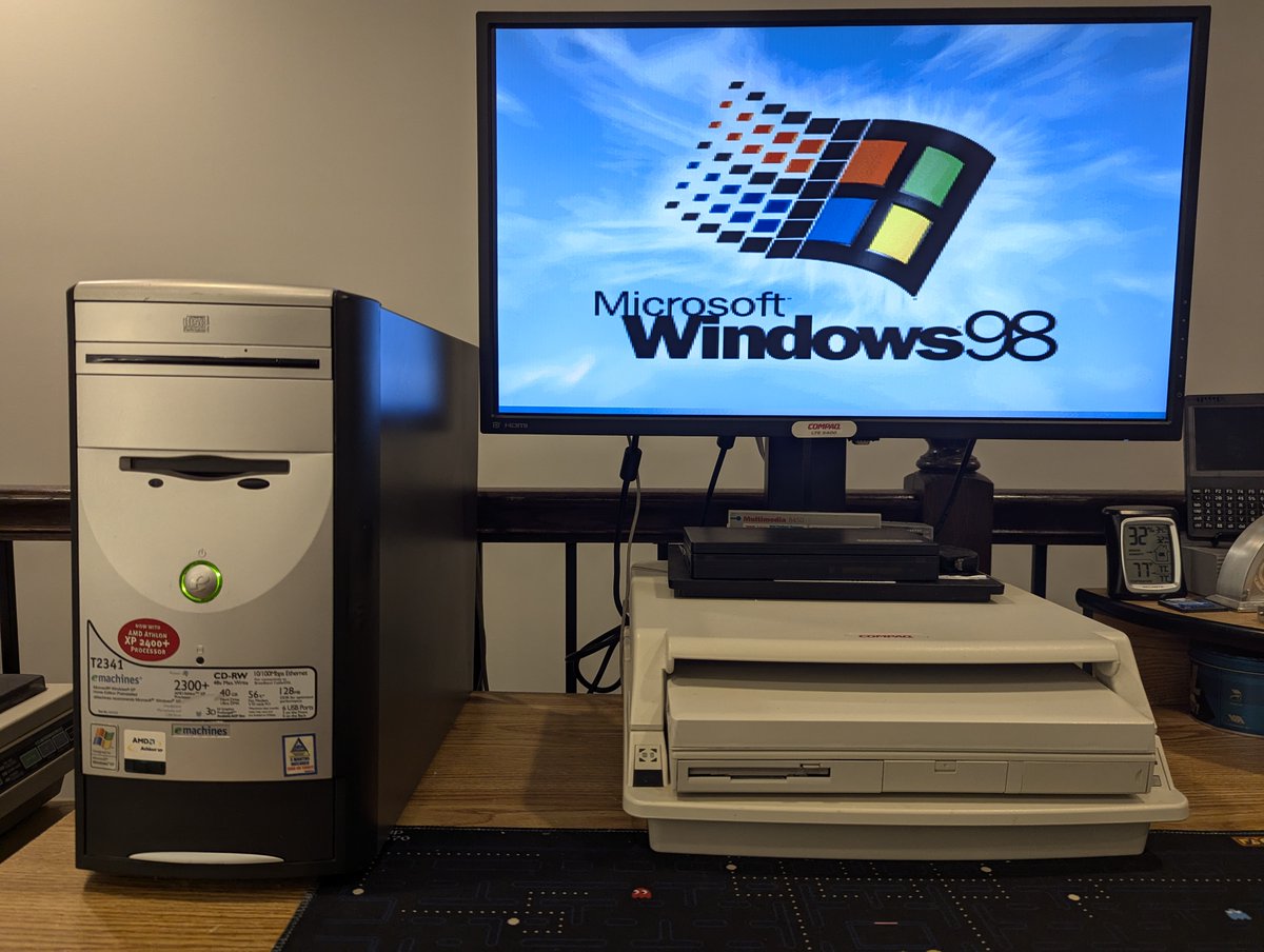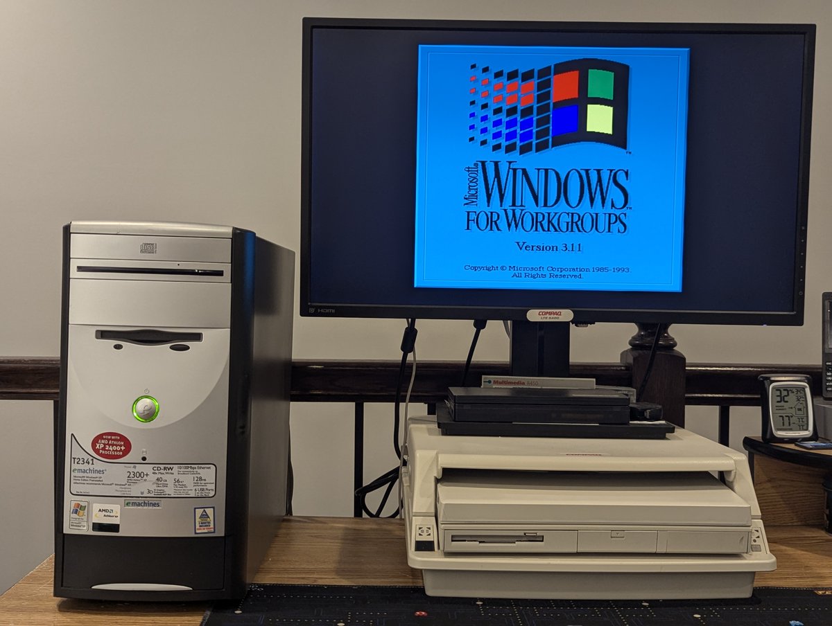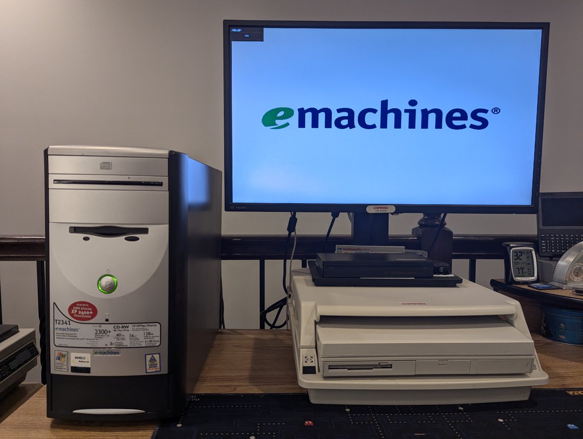 Oh my, what have we here? An eMachines?!? Yep! It's a T2341 Athlon XP 2400+ system, and I just loaded three operating systems on it (well, kindof... at least 2 of the 3 are fully functional). Let's talk about it in a 🧵 here!
