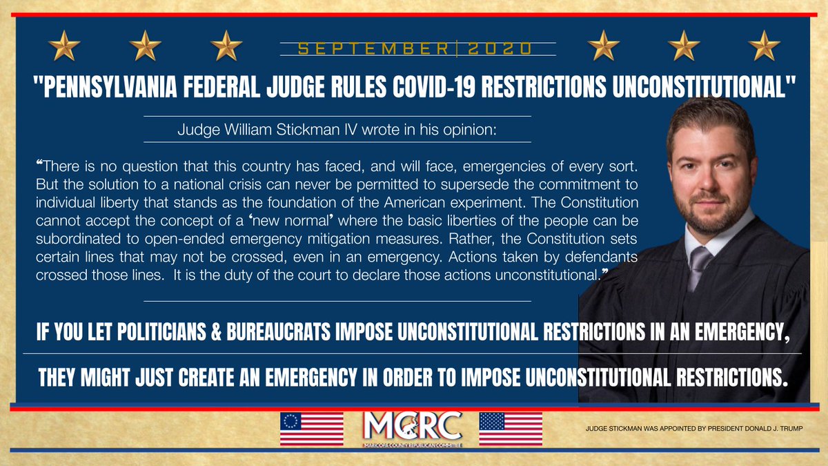 3/4 "The Constitution cannot accept the concept of a ‘new normal’ where the basic liberties of the people can be subordinated to open-ended emergency mitigation measures. Rather, the Constitution sets certain lines that may not be crossed, even in an emergency"...