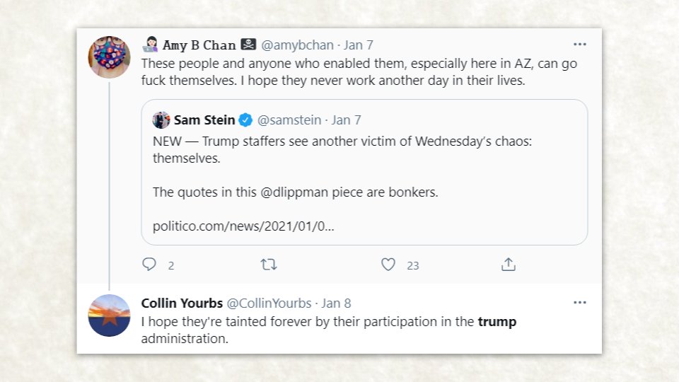 Traitors ("one who betrays another's trust or is false to an obligation or duty"): John Giles, Julie Spilsbury, Pete Hershberger, Chris Herstam, Steve May, Robin Shaw, Roberta Voss, Karen Bonds, Neil Giuliano, Robin Arredondo-Savage, David Luna, Paul Charlton, Chuck Coughlin,