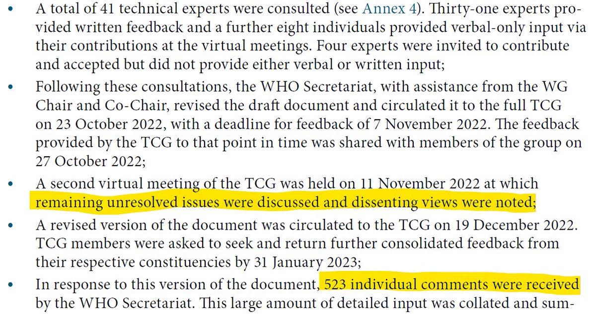 2) When the consultation was started under Dr. Swaminathan, there was a process for selecting TCG members. I and others would argue the whole thing was unnecessary, WHO (including Dr. Kerkhove) just needed to admit their mistakes, but at least it wasn't all just backroom deals.