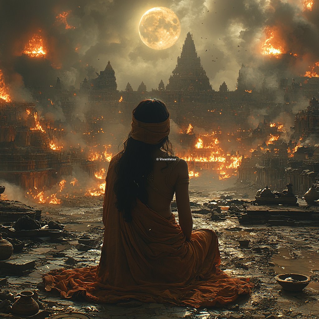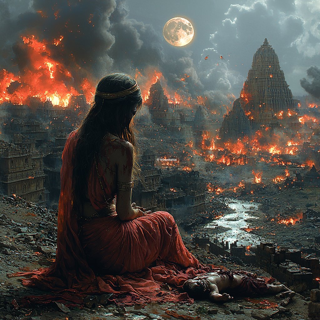 Amidst the ruins of this war, Gandhari stood as a mother who had lost everything. Her grief was profound, and her sorrow was unparalleled. In her eyes, the war had taken away her entire lineage, her hopes, and her dreams.