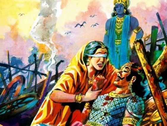 Mother of Kauravas; After seeing his Sons lifeless on the battlefield. She CURSED Krishna Ji: "His entire clan will be DESTROYED".