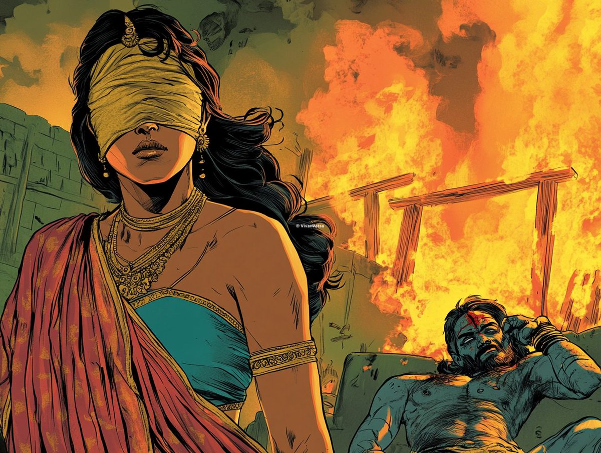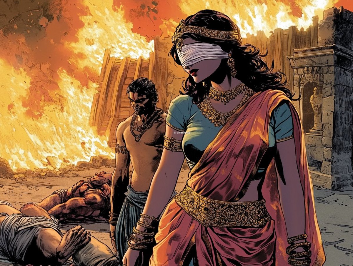 Gandhari. Queen of Hastinapur & wife of King Dhritarashtra. She never forgot her roots, her Sanatan Sanskriti. Despite being born with the ability to see, Gandhari voluntarily blindfolded herself for life to share the darkness that her blind husband Dhritarashtra lived with.