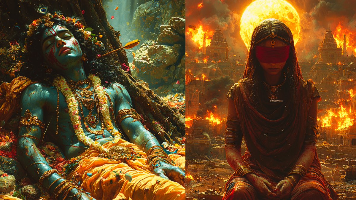 “As I had to witness the destruction of my entire family & lineage, you would suffer too. You would too witness the destruction of your dynasty, Yadava. I Curse you Krishna that your entire clan would perish, and you would die a lonely and tragic death.”