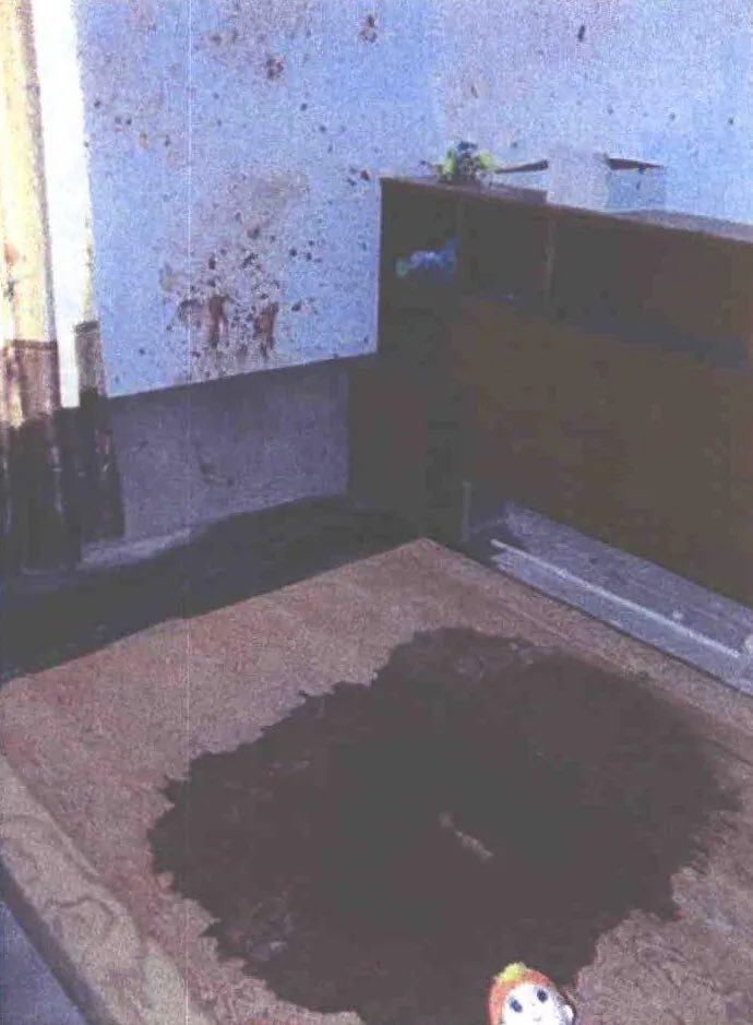 The bedroom where Ayda, her sister, and five of her children were killed. The photo was taken after the bodies and the mattress had been removed.