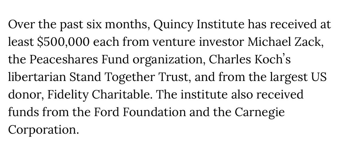 Die erste Million erhielt das «Quincy Institute» von der George Soros Foundation und der milliardenschweren Charles Koch Foundation.
