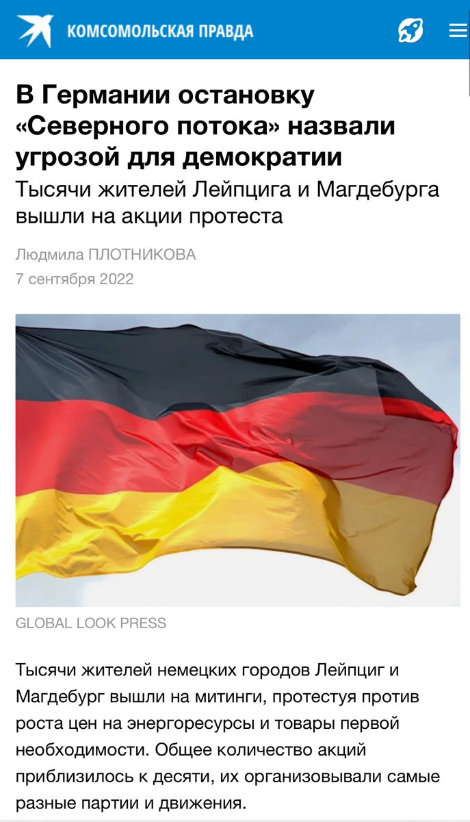 In der zweiten Jahreshälfte 2022 meldeten russische Nachrichtenagenturen erfreulicherweise, dass ein linker Politiker in Deutschland die Bürger zu Protesten gegen die Gassteuer aufgerufen hatte, und berichteten auch von Kundgebungen.