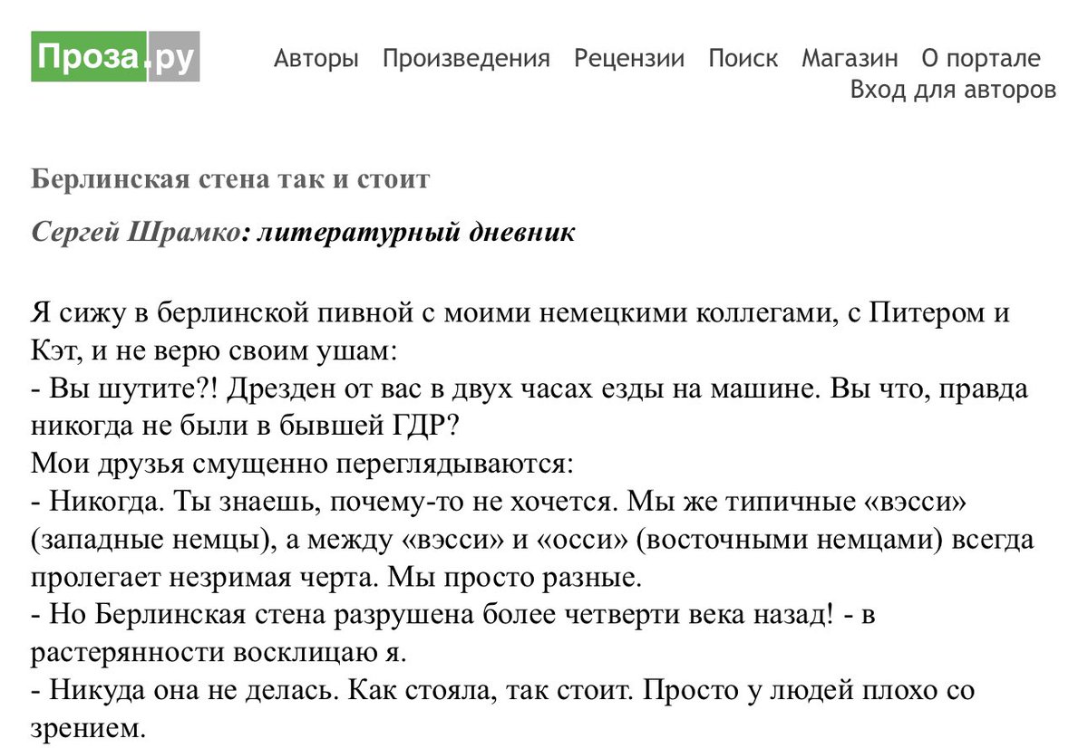 2016 veröffentlichte Sergei Shramko in seinem literarischen Tagebuch einen Artikel mit Jörg Urban unter dem Titel «Immunität gegen Propaganda».