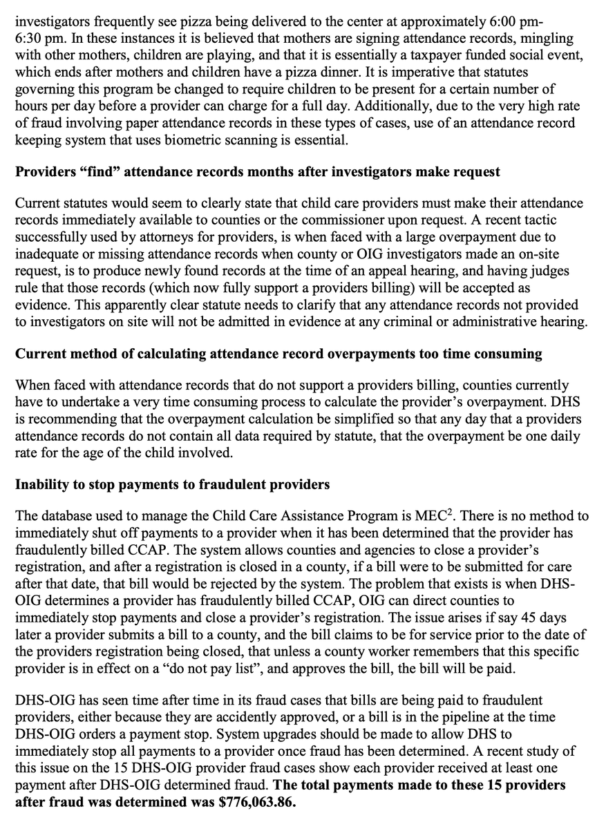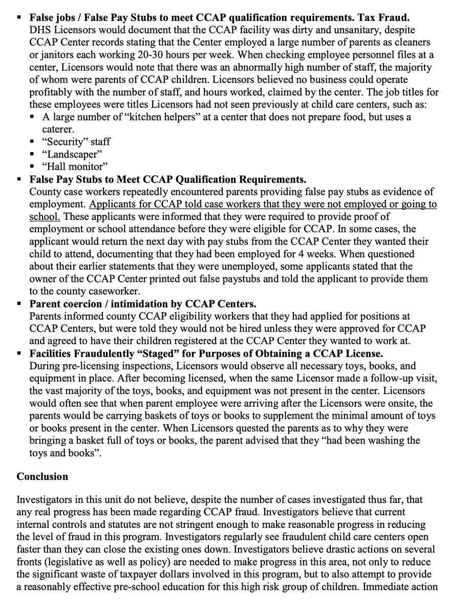 Here's an email summarizing the fraud that the lead investigator sent the IG in 2018. Those currently in the MSM claiming that child care fraud isn't a serious problem should read this.