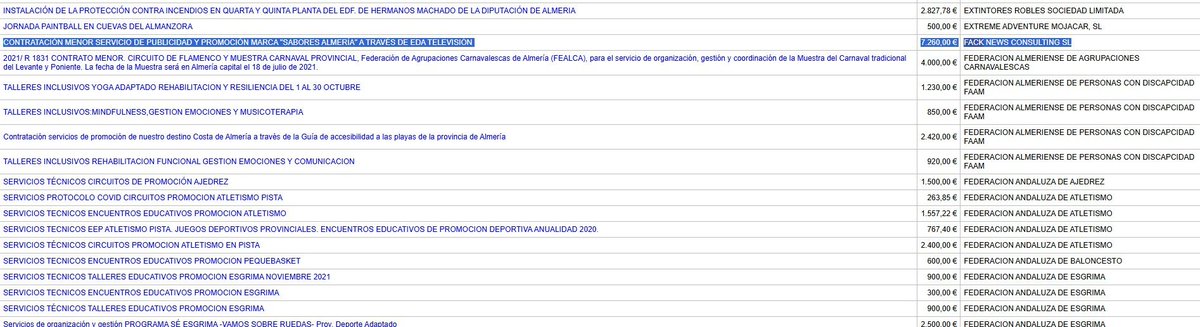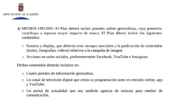 Al menos desde el 2021 EDA TV y Negre trabajan para la diputación de Almería, el primer año con un contrato directo a dedo por 7.200 euros, pero el resto de años los contratos públicos de publicidad institucional para agencias son a medida para contratar a EDA TV y Negre.