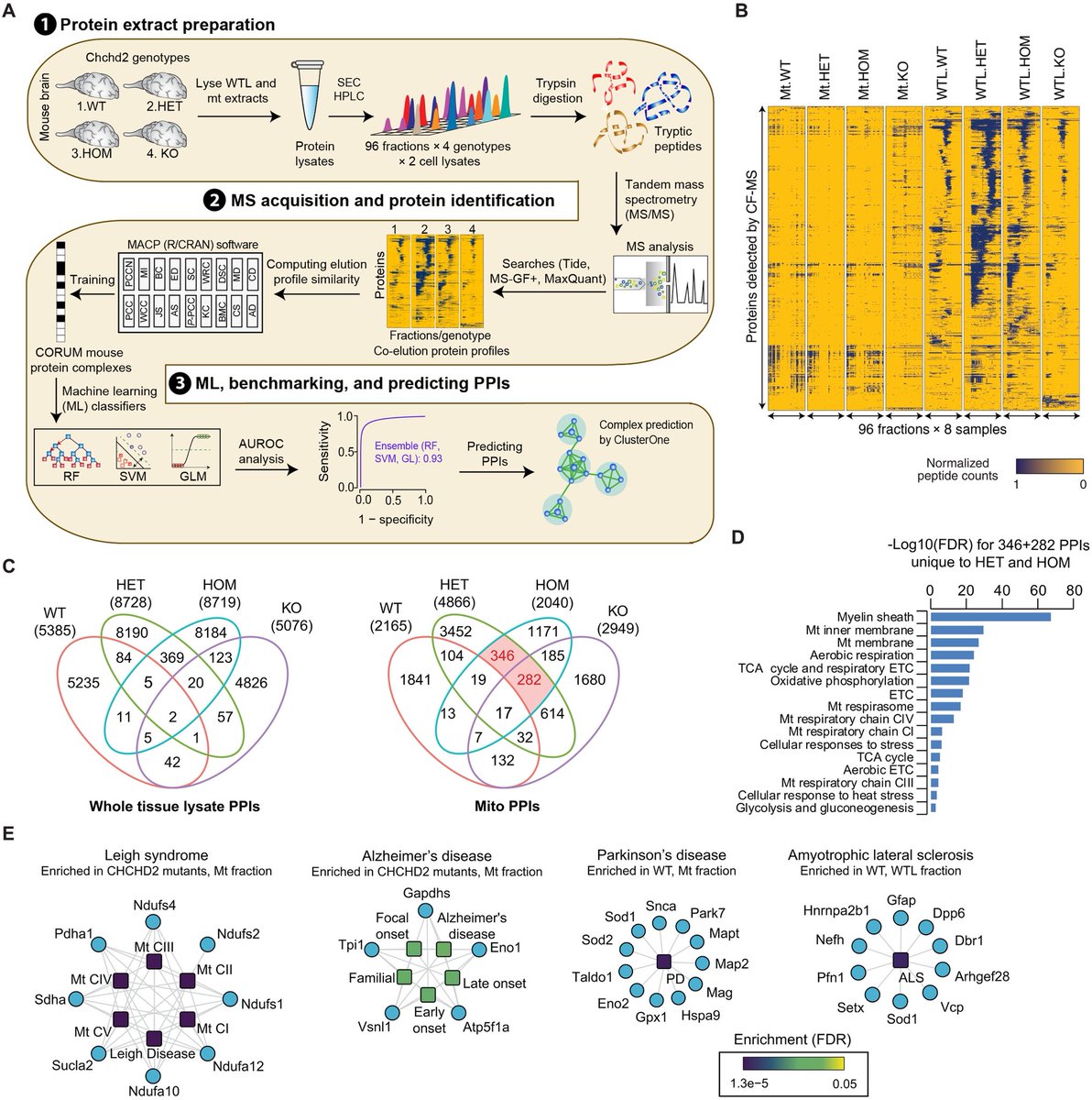 ➡️ Mutant CHCHD2 accumulates in mitochondria, making them swollen and structurally abnormal.