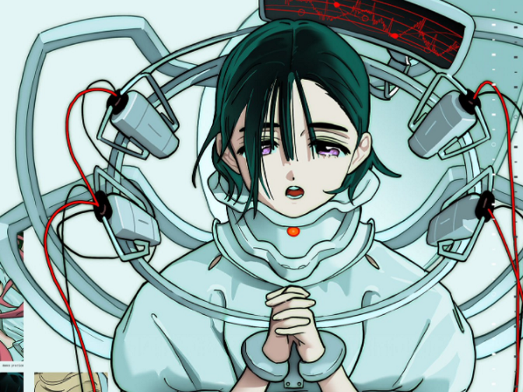 hyuna is shown stored in a tube filled with preservation fluid, which vaguely reminded me of luka's birthday graphic. the test itself might be more about data collection—monitoring brainwaves, given the electrodes on her temples, to study cognitive functions or brain activities