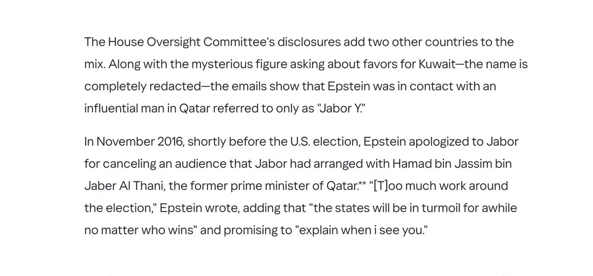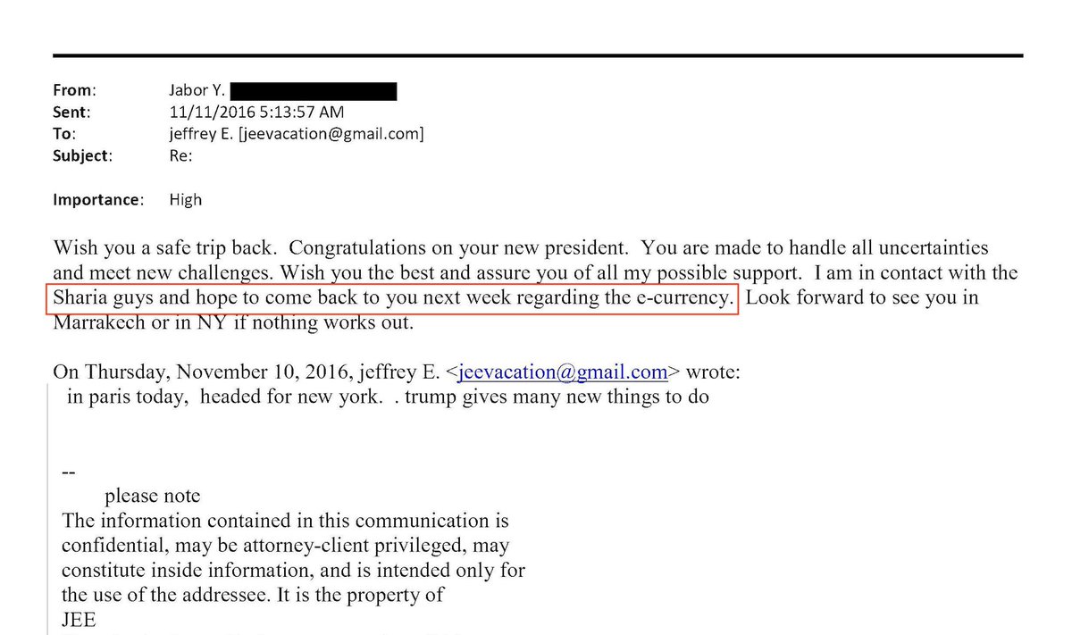 2016: Epstein receives an email from Qatari "Jabor Y." regarding "Sharia guys" and "e-currency" a year and a half after Epstein had provided the funding for the bitcoin core development team at the MIT Digital Currency Initiative. #EpsteinFiles