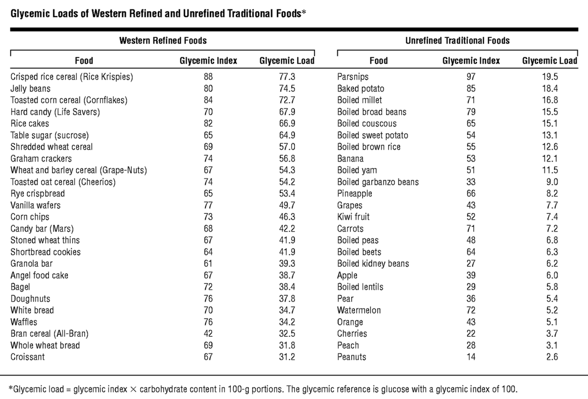 As this chart shows, every available food to the Aché and Kitivan people has a lower glycemic load than our modern diet.