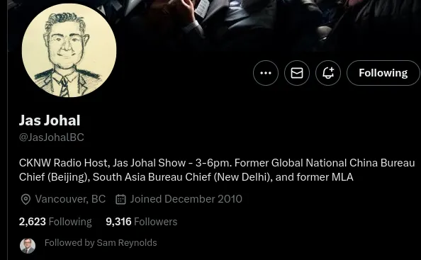 Just a few hours ago, @Scrase was "cancelled" by @JasJohalBC , a journalist in Vancouver and former Liberal Member of the Legislative Assembly of British Columbia.