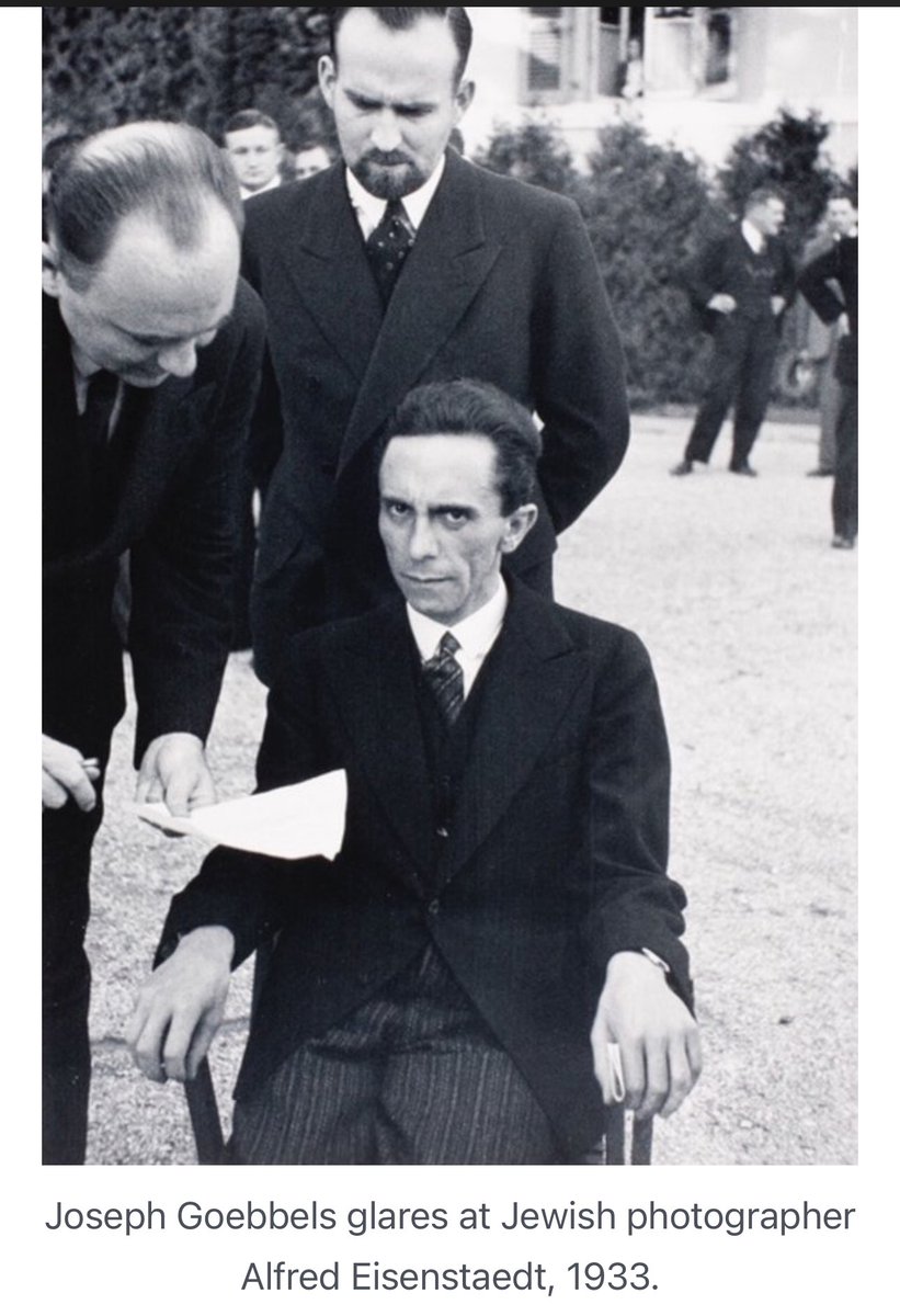 Goebbels looking on with unbridled hate at a Jewish photographer. 1933.