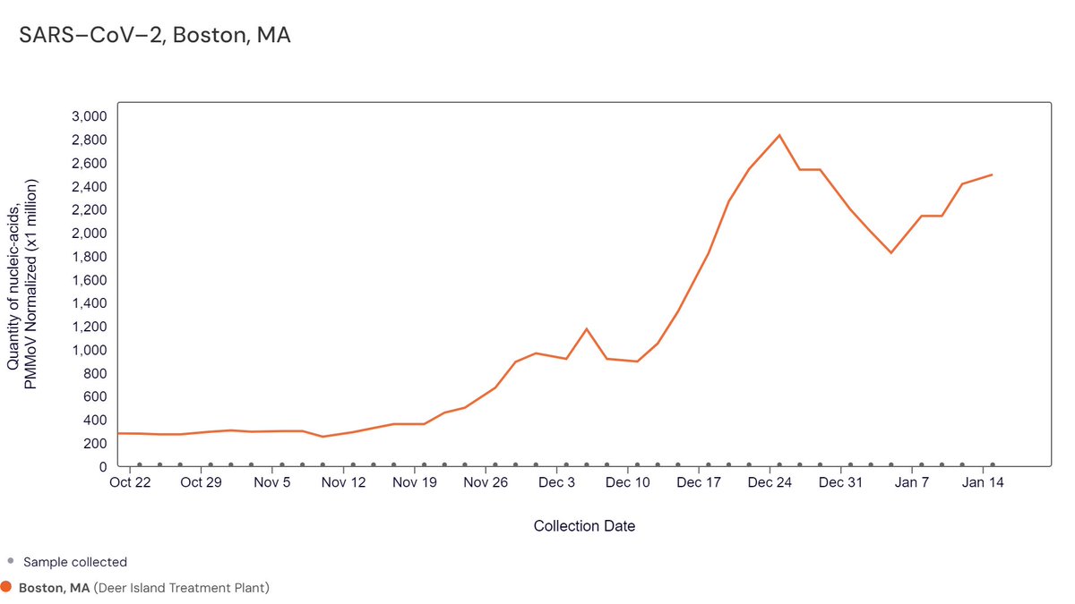 But if you think it is just happening in Chicago, you are wrong. Now take a look at Boston, Massachusetts. There has been a quick turn around from the drop, and they are once again rising for Covid in wastewater.