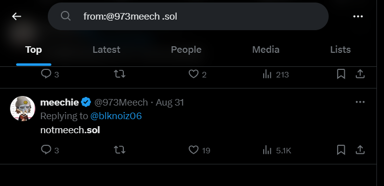 However if they don't simply navigate too twitter search and search e.g. "from:@retentionjunkie .sol"