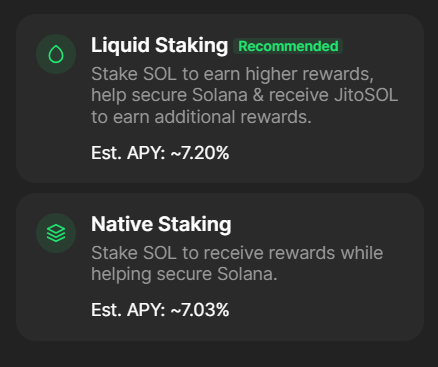Staking refers to delegating your $SOL to a validator and earning rewards for doing so. Staking usually gives out an average of 8% APY but with some validators this can go up to 10-12%.