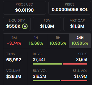 1. Head over too Dexscreener/Birdeye whatever platform you typically use too find coins. You want too try find a coin with low likelyhood of rugging (DYOR) and a substantial amount of volume, especially compared too it's marketcap.
