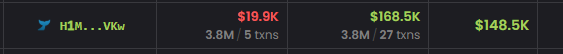 For this example I will choose this wallet which turned $20K into over $168K in one trade!