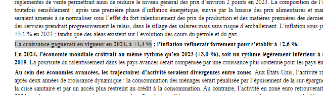 « La croissance gagnerait en vigueur en 2024, à +1,4 % ».
