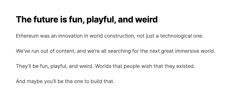 Onchain games and autonomous worlds are the real whitespace that will enable net new virtual worlds to emerge, not web 2.5 games that lazily implement NFTs and stop at that.
