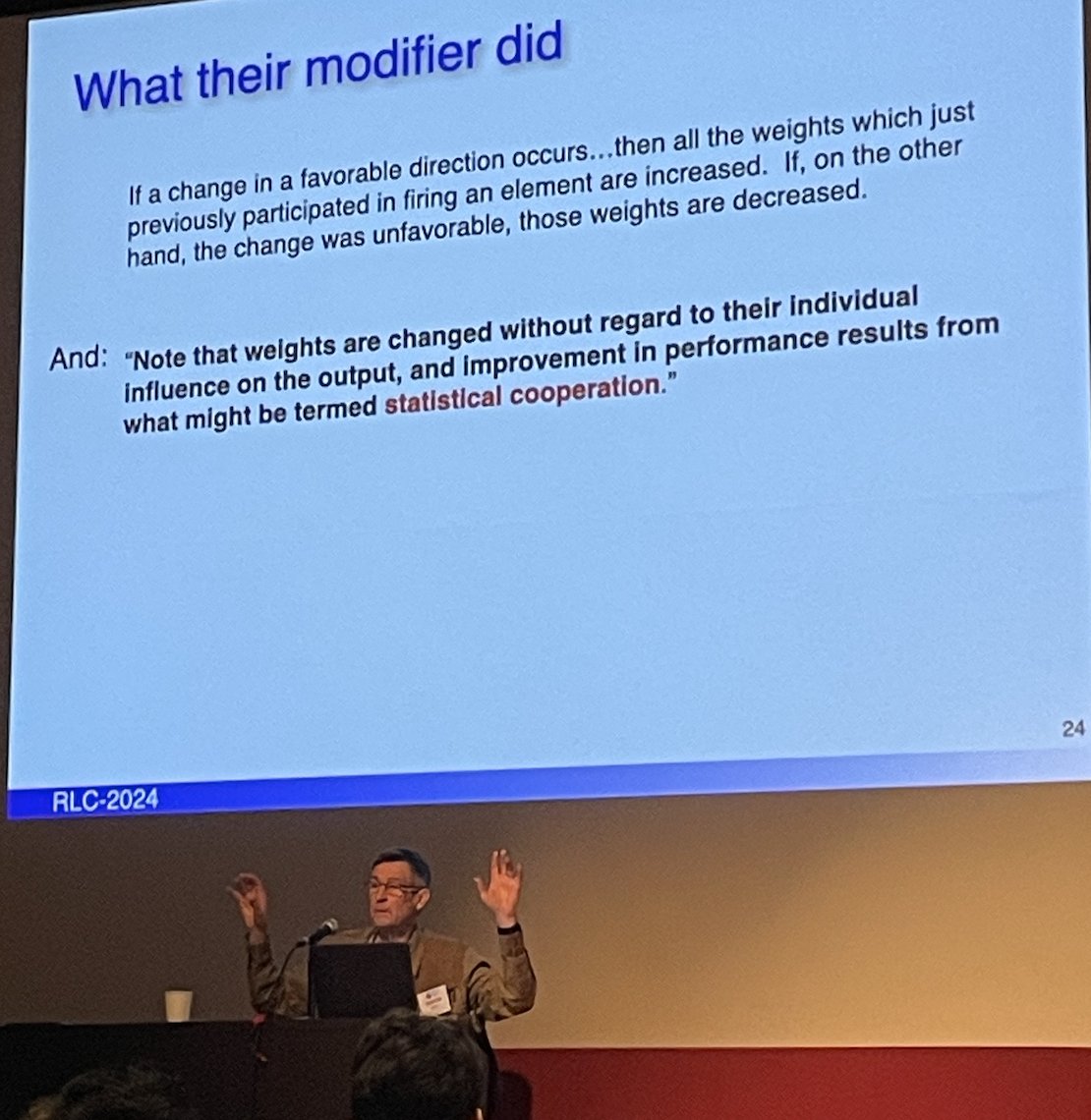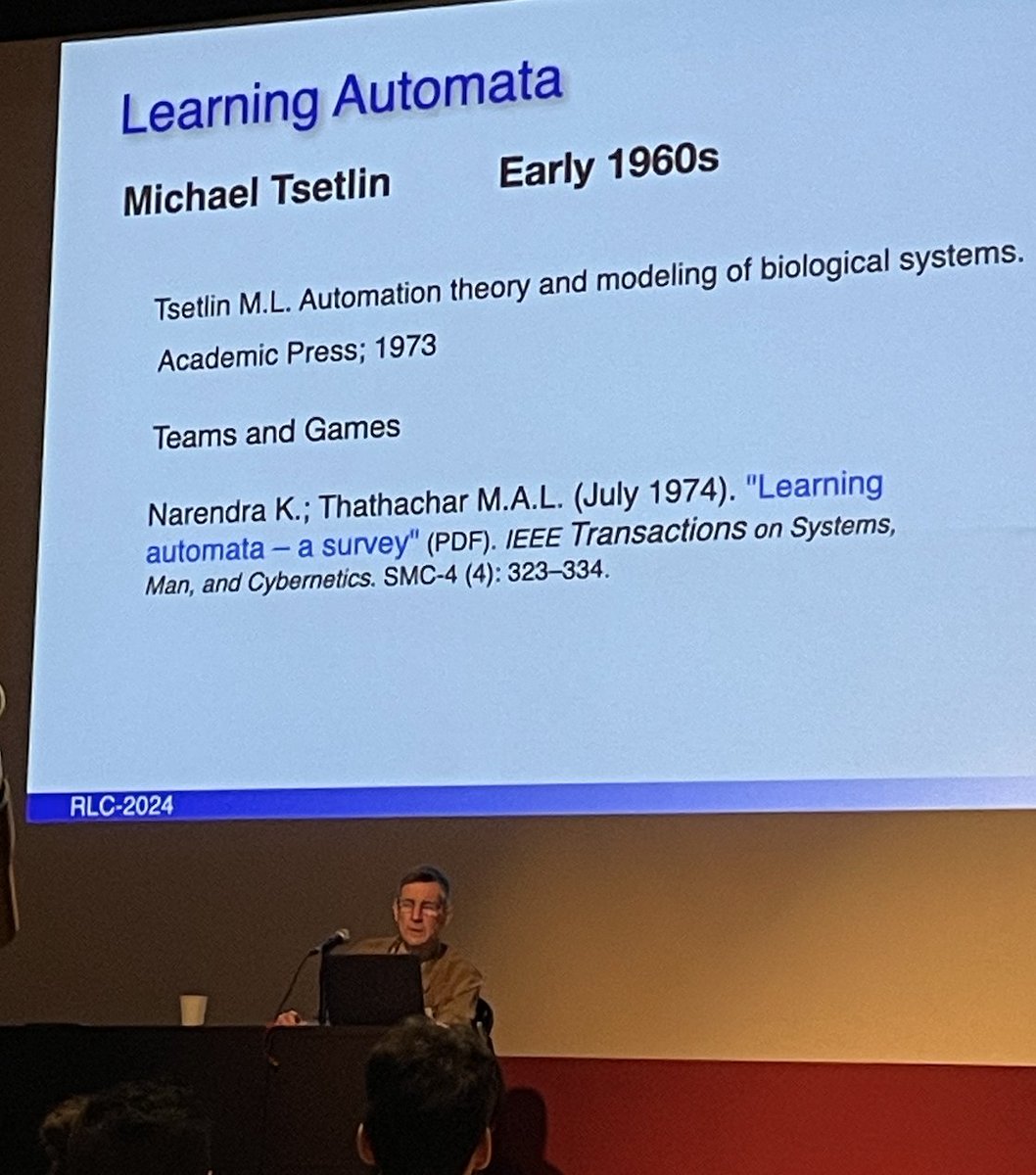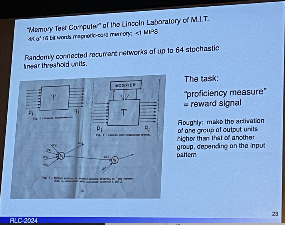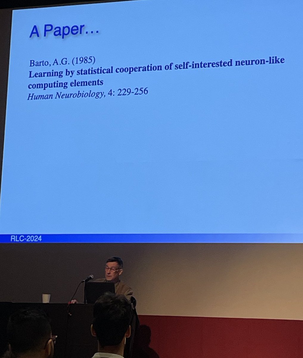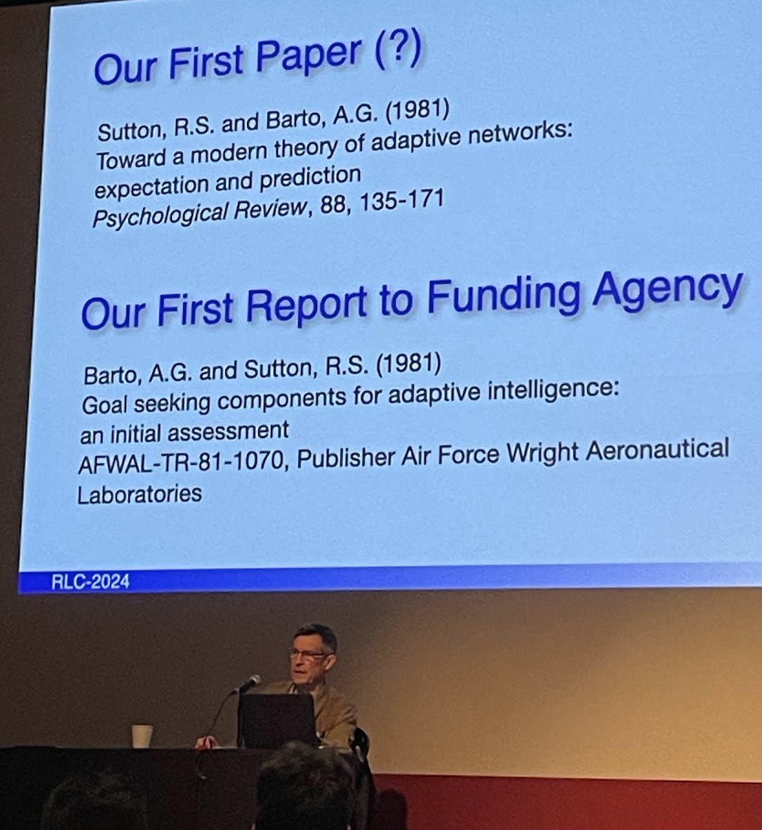 A thread on the history of RL/ML based on Andy Barto's talk #RLC2024: the Reinforcement Learning Conference.