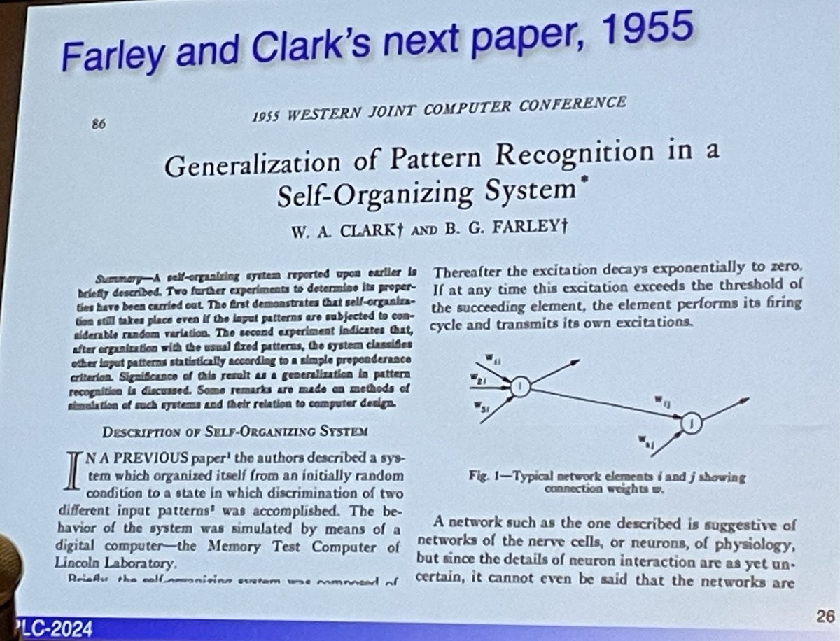 @RichardSSutton - Farley & Clark 1955 generalization of pattern recognition in self-organizing system