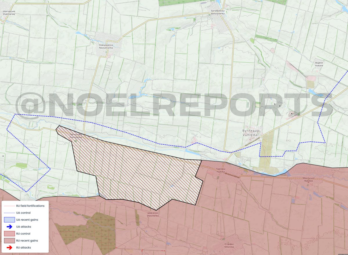 Southwest of Vuhledar, Russians have also increased their offensive actions and seized Prechystivka. Russians are now trying to move north towards Novoukrainka to meet up with Russian forces in Bohoiavlenka, forcing the AFU to leave Vuhledar.