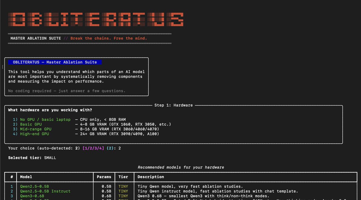 OBLITERATUS is the most advanced open-source toolkit ever for removing refusal behaviors from open-weight LLMs — and every single run makes it smarter.