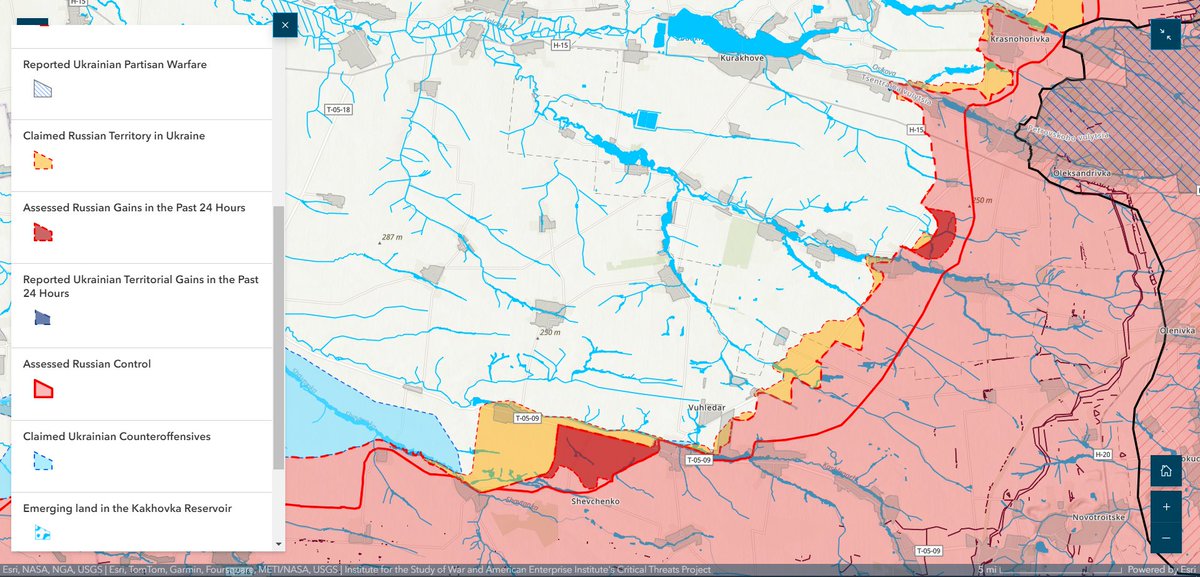 The Russian MoD and other Russian sources claimed that Russian forces seized Prechystivka and advanced in the fields west of the settlement, although ISW has not observed visual evidence that Russian forces are operating within the settlement. Russian milbloggers also claimed that Russian forces advanced near Mylnyi Pond south of Vodyane (northeast of Vuhledar), although ISW has not observed visual evidence confirming this claim.