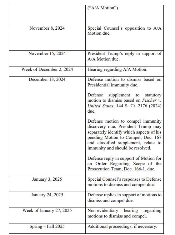 Ahead of today's status conference, Trump's defense proposed a timetable that slides deep into 2025 for this case