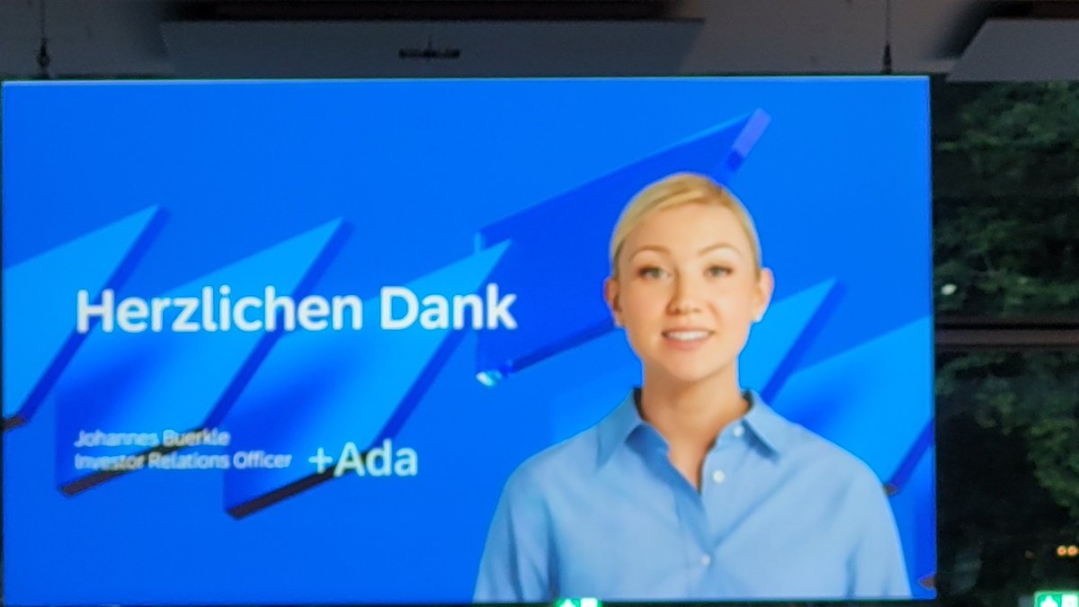 Die digitale IR AI Assistentin Ada verabschiedet sich und leitet zur Q&A Session über.