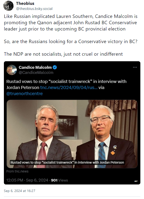 Candice Malcolm, Editor-in-Chief of True North Centre, does not know of Tenet Media and does not read news. If the obvious implication of them being Russian agents were not so serious this #Weird denial from the obviously implicated would be very funny.