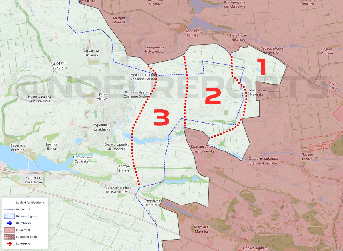 As all fronts seems stabilized by the AFU, only the Nevelske salient is problematic for Ukraine. We expect zone 1 to be left soon/already, zone 2 to be given up soon due to the lack of defensive structures and zone 3 to be the new line of defense to halt RU progress to Kurakhove.