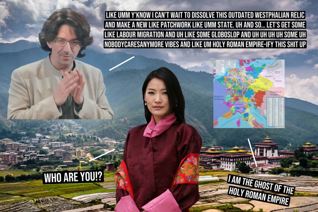 Bhutan opening up to nomad visas and skipping political crises of the C21st, going to straight the C22nd patchwork political meta where the international class just live wherever they want and all countries are vibey moodboards now rather than nations in the old Westphalian sense