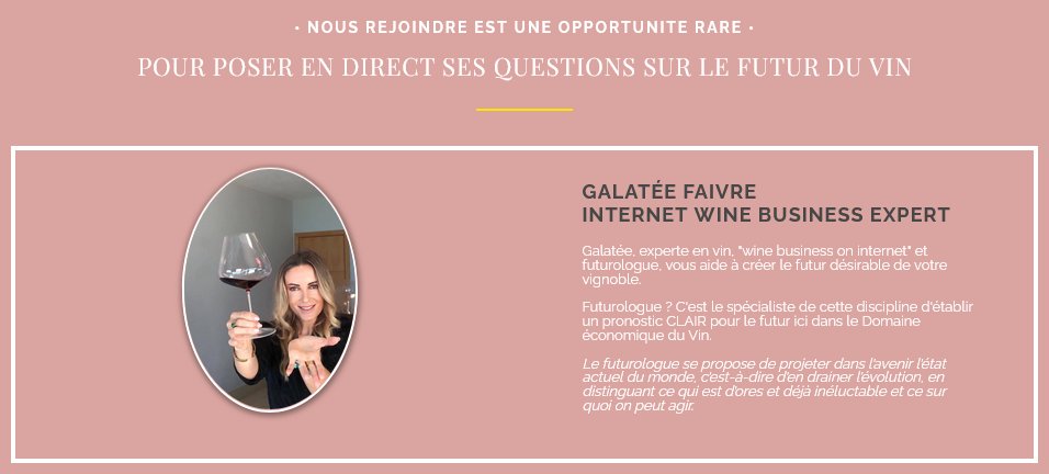 3/: Sur LinkedIn, on apprend assez peu sur elle. Hormis ses activités sur les réseaux, on voit toutefois qu’elle fait des «webinaires» et des formations sur le marketing du vin. Avec quelques touches covidosceptiques et antivax quand même… sinon on y trouve quelques liens vidéo.
