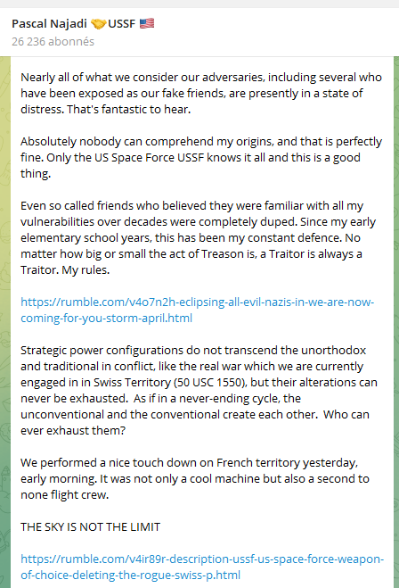 34/n : Et les esprits simples de la facho-complosphère ont été conquis. Les croyants en l’«énergie libre», les récentistes, certains platistes s’y sont mis, et des adeptes de cette fantasmagorie, la plupart sont pro-russes, tous sont antivax, et nombreux sont proches des QAnon.