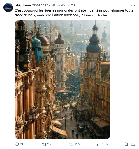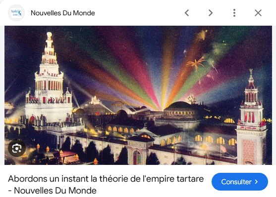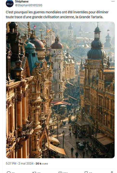 7/n : Ce n’est que beaucoup plus tard, à partir du début du XXIème siècle, et spécialement à partir de 2018-2020 que ces mythes associés à un révisionnisme historique ont donné naissance à une théorie du complot alléguant l’existence d’un « Empire Tartare » avancé et idyllique…