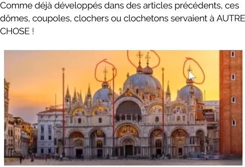 13/n : Et donc, selon ces allumés, chaque clocheton devient support d’antenne, presque toujours disparue, chaque coupole abritait un générateur, ou « résonateur », chaque colonne devient accumulateur. Rien ne saurait échapper à leur sagacité !