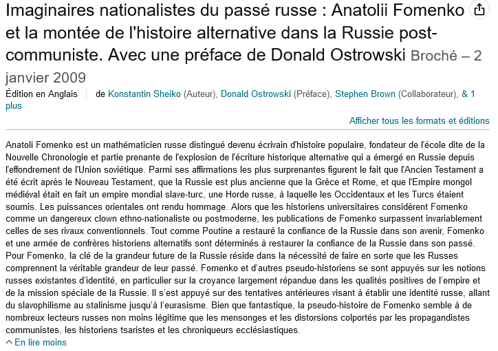 24/n : Puis les cercles nationalistes russes vont commencer à diffuser cette histoire, à tel point que depuis plusieurs années les livres de Fomenko et Levashov sont les livres d’histoire les plus vendus en Russie… et se répandent dans le monde…