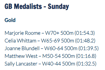 Marjorie Roome is now dominating the women's 70+ category. But Joanne Blundell, having dominated the women's 55-59 age category, is now in his 60s and is, according to a women's rowing insider, beating Roome's world record times for the 60+ categories he set a few years ago 4/4